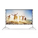 The Vamvo Portable Projection Screen is perfect for carrying around on a road trip or camping. It can be assembled and disassembled in minutes, and everything easily fits in the bundled storage bag. The screen is also relatively lightweight at 7.4 lbs.